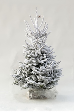 L'Epicéa est originaire d'Europe. Ce sapin au feuillage persistant arbore des branches qui se composent d'aiguilles de 2 à 3 cm. Elles sont piquantes et disposées en brosse. Son feuillage est ici « floqué » c'est-à-dire enduit de neige artificielle.