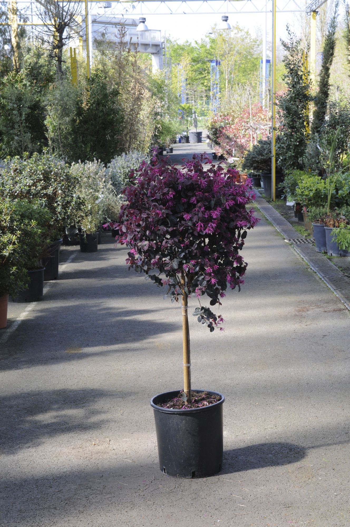 Le Loropetalum Chinense Black Pearlest originaire de Chine. Cet arbuste robuste offre un feuillage spectaculaire bien fourni, de couleur pourpre et aux feuilles entières à la forme ovale. Lors de sa floraison, cette plante arbore des fleurs aux pétales découpées en fines lanières d'un rose vif et qui sont souvent parfumées. Cet arbuste peut atteindre jusqu'à 2 mètres de hauteur.